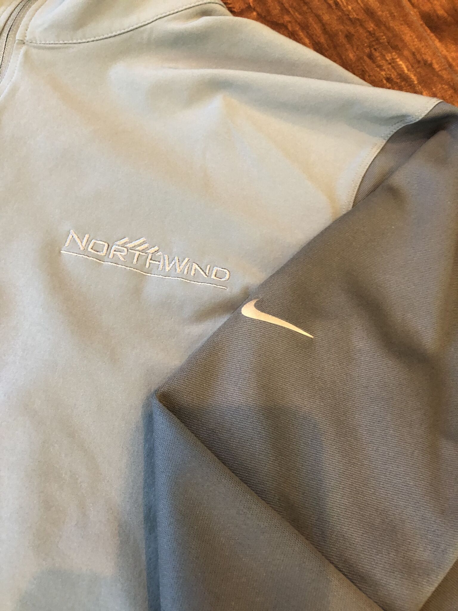 is the style of where a complementary and nearly matching color is used for the logo decoration. It is becoming a trending method for adding professional logos to custom clothing and accessories.